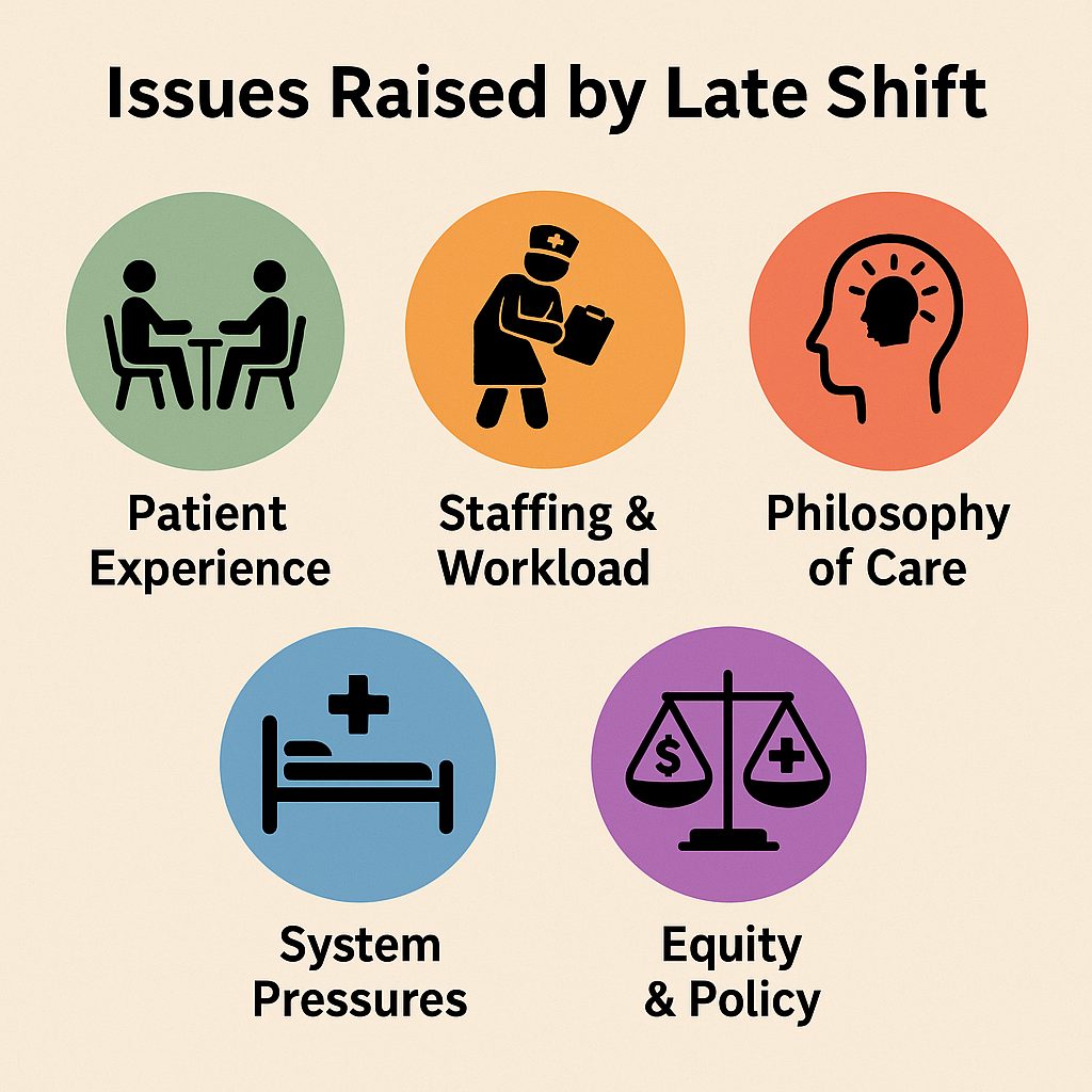 Late Shift is curiously uplifting because it refuses denial. It shows the cost of running hospitals, and illustrates the simple truth that connection, time, and attention are not frills but should be at the heart of an effective health care system. The question is whether we will fund healthcare so that Floria, and her real-world colleagues, can keep doing it—and whether we want a system where dignity at 3 a.m. is a public right, not a private upgrade.