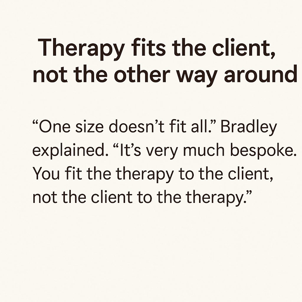 “One size doesn’t fit all,” Bradley explained. “It’s very much bespoke. You fit the therapy to the client, not the client to the therapy”.