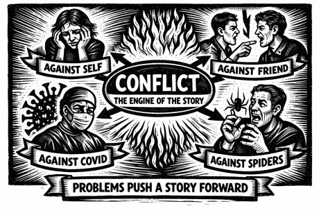 Groups formed thoughtful conflicts for their characters. Some were gentle and introspective; others were dramatic. What mattered was that each student saw how a problem pushes a narrative forward.