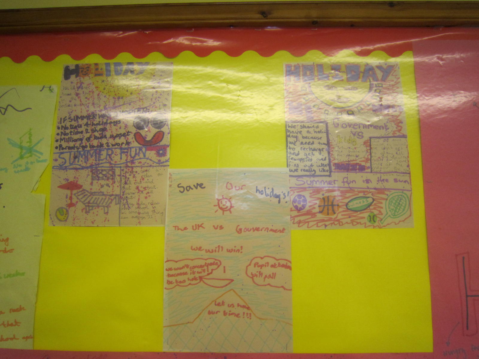 It’s also worth pointing out that 80% of our children are not living in poverty. Are you saying that they too should be staying at school longer, despite the fact that they all want to keep the summer holidays as they are? Indeed, when I discussed the issue with my pupils – rich and poor – they were so incensed by the notion that their freedom would be curtailed that they made some “protest” posters in response, saying things such as they would have nothing to look forward to during term-time and that shorter holidays would make them unhappier.